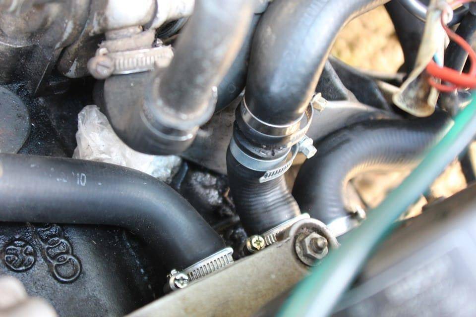 Освободив контур от воды или антифриза, снимают вентилятор, открепляют резиновый шланг, предварительно ослабив хомутик.