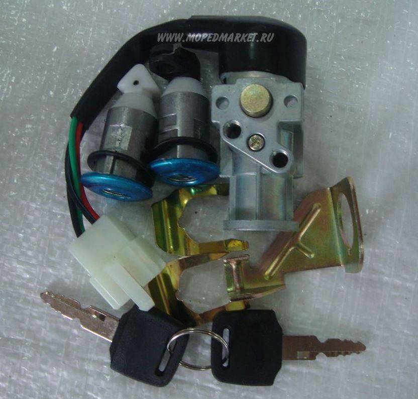 Для активации системы используется так называемый замок, от которого сигнал подается уже к другим деталям. Для его использования на большинстве транспортных средств требуется ключ. В выключенном положении идет замыкание коммутатора на «землю» при помощи специальной «ноги». В целом устройство системы на Альфе и других скутерах, и мопедах не слишком отличается от аналогичного на автомобилях. Как уже сказано выше, основную роль помимо замка играет катушка зажигания и коммутатор.