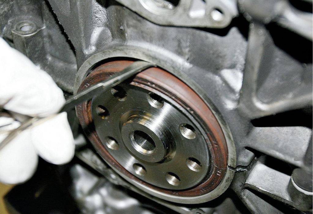 Это всегда сложнее, чем установка нового переднего сальника. Необходимо учитывать конструктивные особенности, ведь снять задний уплотнитель, который потек, труднее по причине его скрытности. Сальник находится за системой сцепления, что подразумевает обязательный демонтаж коробки, маховика и т.д.