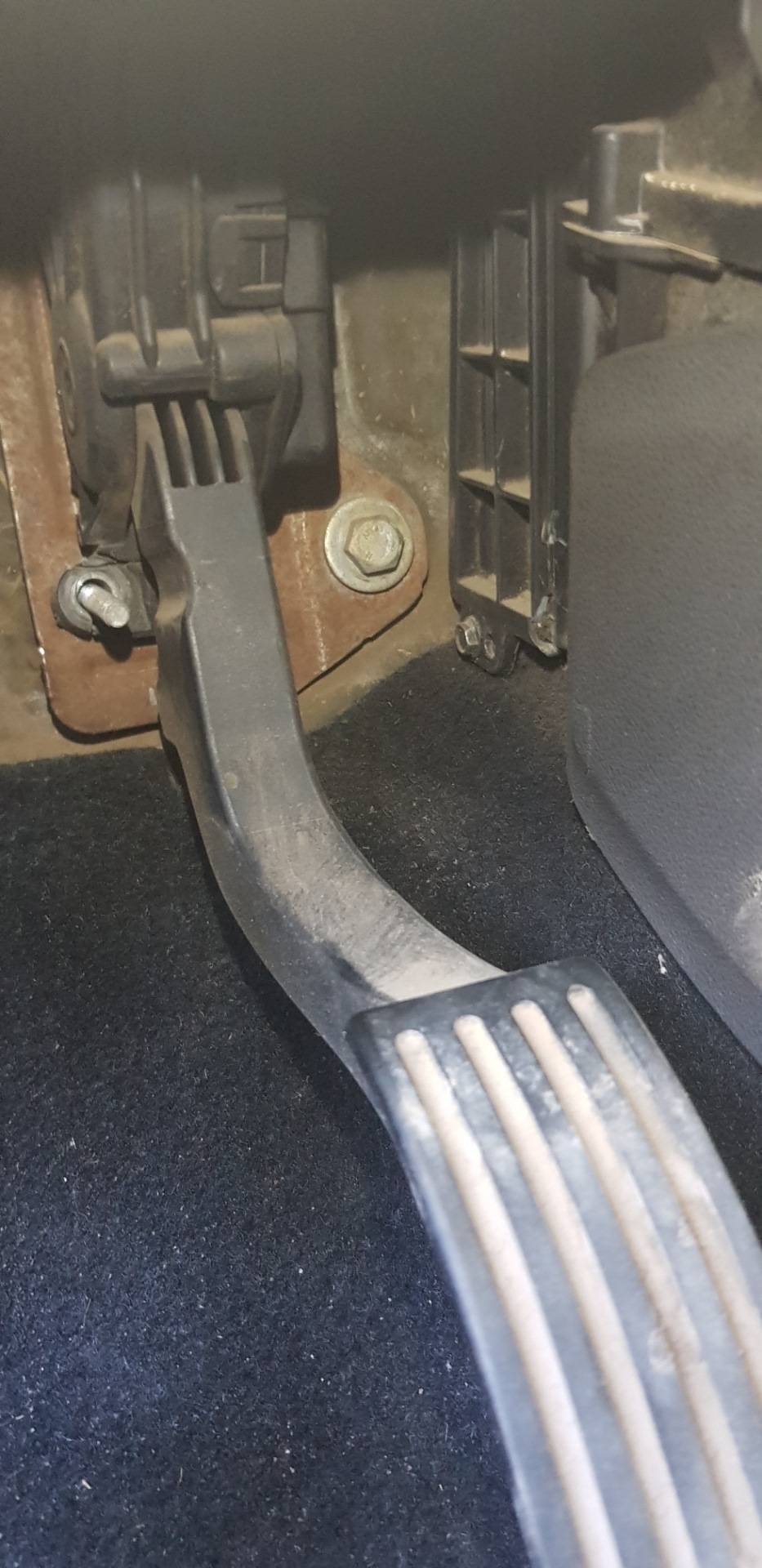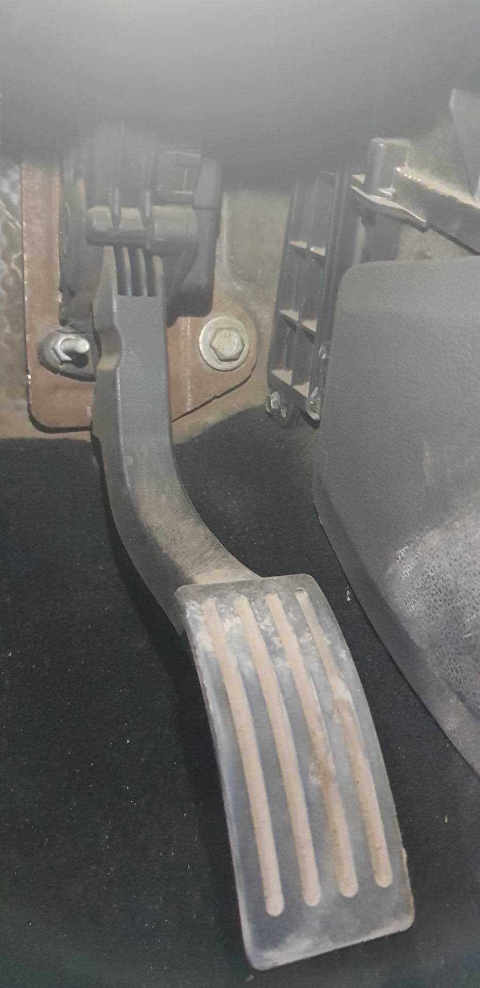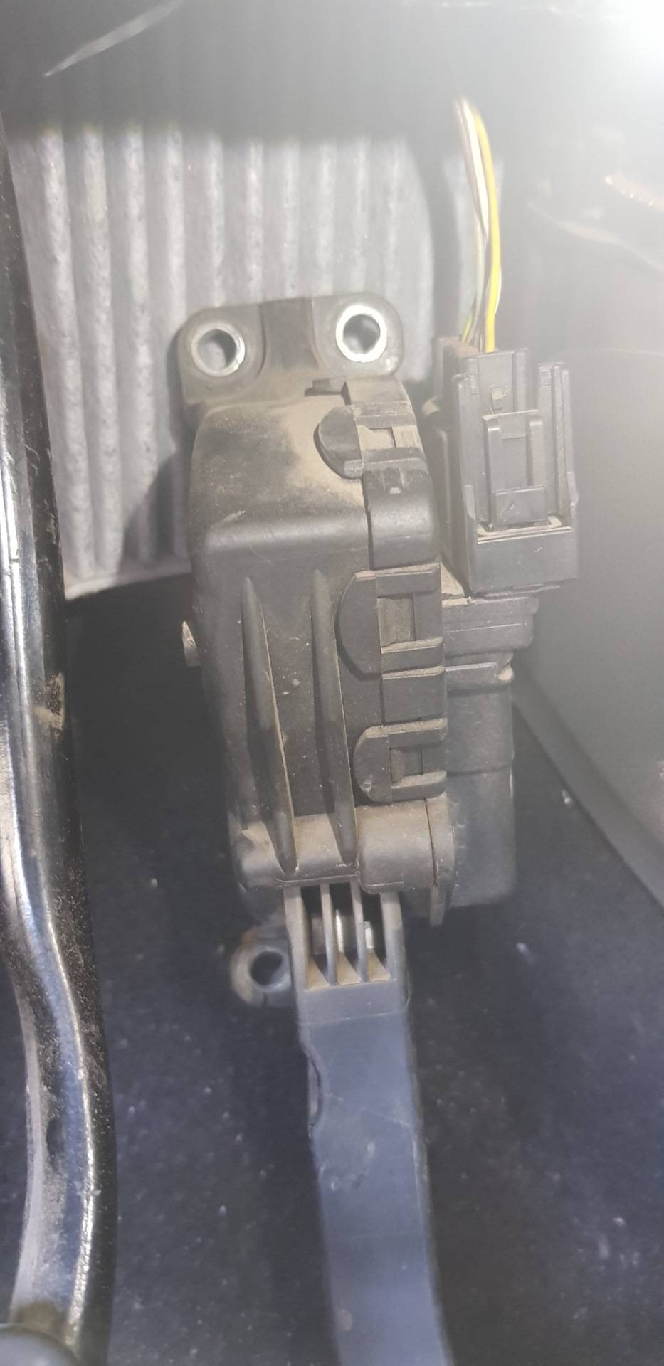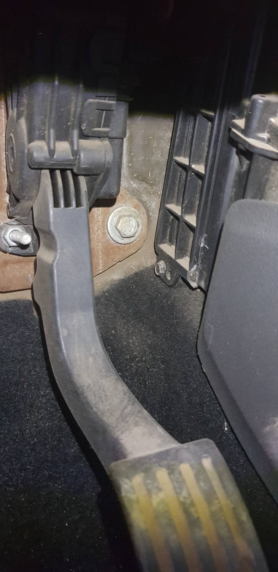Открутив три гайки можно снимать педаль. Клему с педали сдергивать не стал (в принципе закинул педаль газа на педаль тормоза, доступ к отсек с фильтром будет свободный).