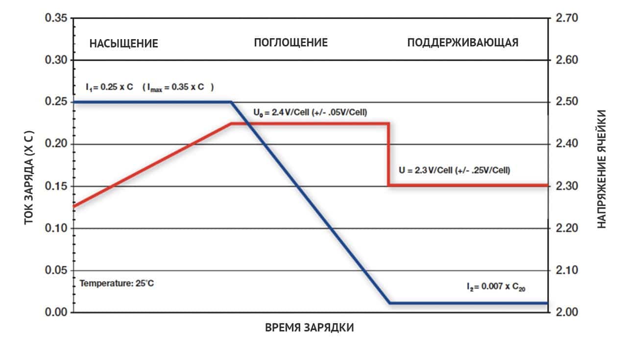 По трехступенчатому алгоритму работают ЗУ, предназначенные для работы с AGM-батареями.