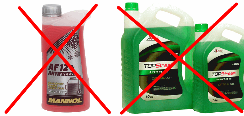 Не рекомендуется использовать разные антифризы, не предназначенные для вашей модели авто