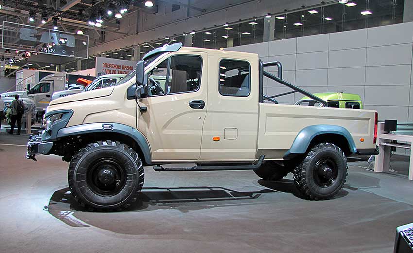 В числе представленных моделей были экспедиционный 7-местный автомобиль «Вепрь NEXT», пикап с двухрядной 7-местной кабиной «Садко NEXT» и амфибийный 10-местный снегоболотоход на пневматиках «Соболь Вездеход».