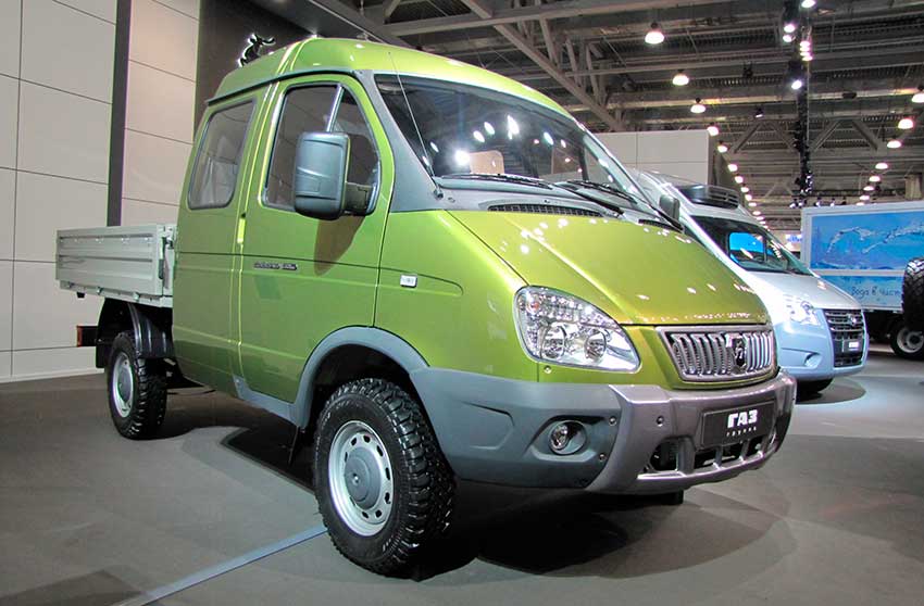 Кроме того, был показан серийный грузопассажирский грузовой автомобиль «Соболь Фермер» с двухрядной кабиной, металлическим бампером, новой панелью приборов и внедорожными шинами.