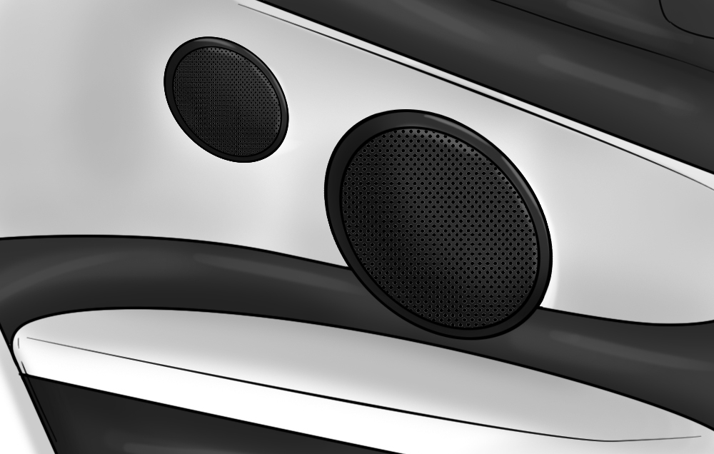 - Большие динамики размещают в задней части салона или на дверях автомобиля. Они работают в средне- и низкочастотных диапазонах.