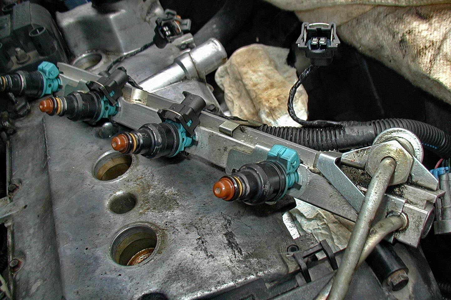 Топливная рампа использована от 1119, выполнена из нержавейки, сливная магистраль полностью отсутствует. Производителем рекомендовано использование голубых тонких форсунок Сименс VAZ20735 либо Бош 0280158022.