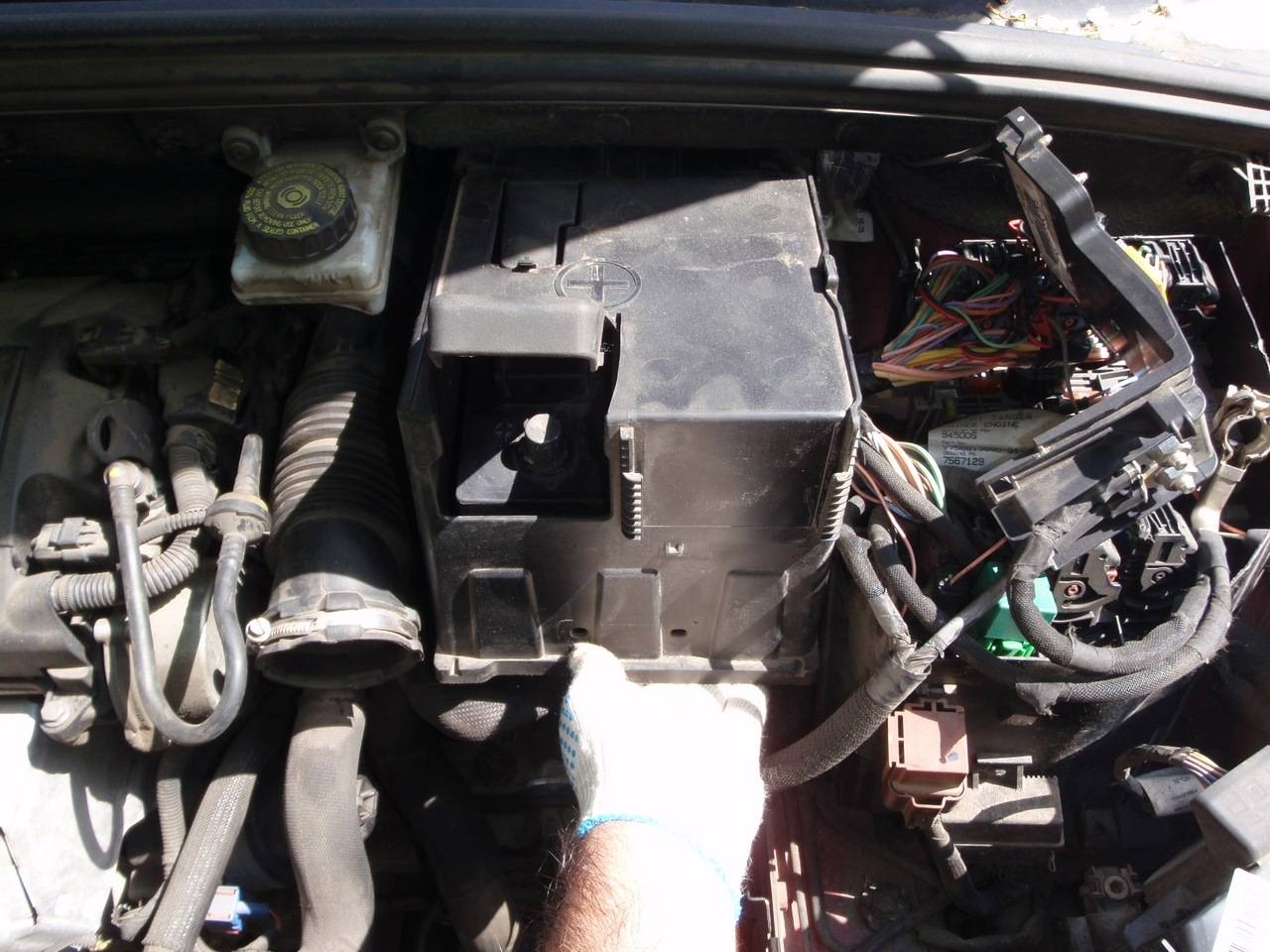 Добравшись до аккумулятора, отключаем плюс; блок, в котором находится предохранитель, отводим в сторонку (этот блок размещается на самом аккумуляторе). Снимаем кожух (для этого нужно немного потянуть деталь на себя) аккумулятора.
