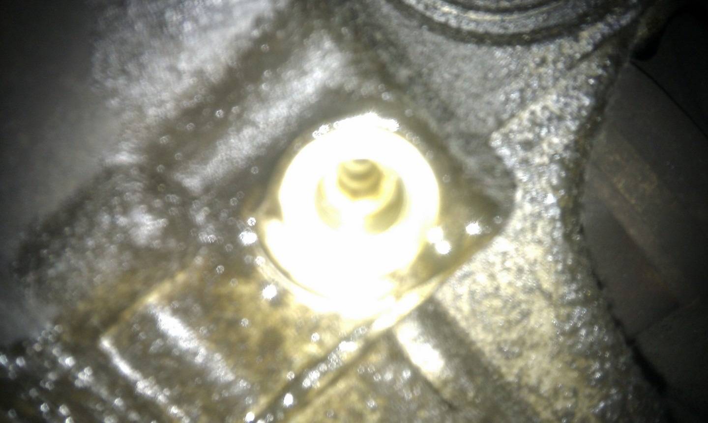 После этого откручиваем пробку на сливе и позволяем старой смазке полностью вытечь.