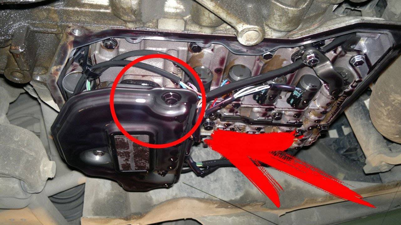 Демонтировать поддон коробки передач, чтобы получить доступ к масляному фильтру. Сначала выкручиваем поддон, снимаем, и очищаем его от остатков жидкости, грязевых отложений и металлической стружки