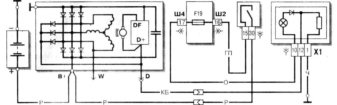 - при включенном зажигании горит индикатор отсутствия возбуждения;