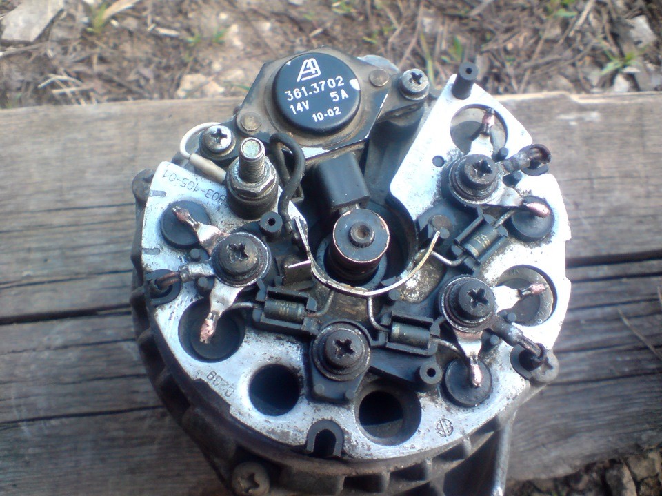 Еще одной потенциальной проблемой может стать неисправность щеточного узла, через который подается ток возбуждения в обмотку ротора. Графитовые щетки через определенный срок стираются и перестают обеспечивать надежный контакт. Это проявляется в отсутствии выходного напряжения (сначала прерывистом, потом постоянном) по причине отсутствия возбуждения. Щетки надо заменить. В большинстве автомобилей щеточный узел совмещен с регулятором напряжения, и менять надо весь узел.