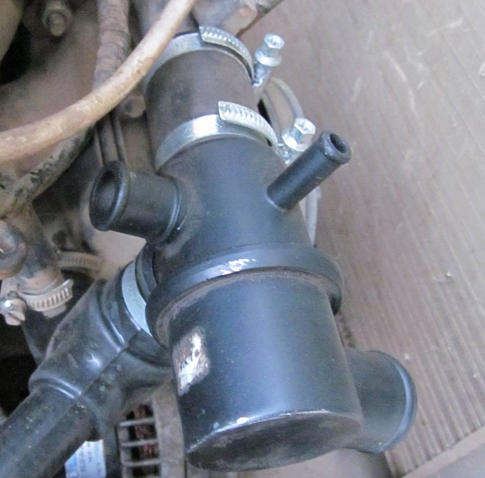 На штуцере радиатора, который раньше служил для подачи О/Ж из расширительного бачка имеется двойное сечение, на меньшее крепим шланг.