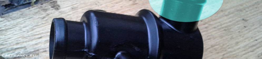 После этого поочередно отсоединяем патрубки от отводов термостата, что наглядно представлено на фото внизу: