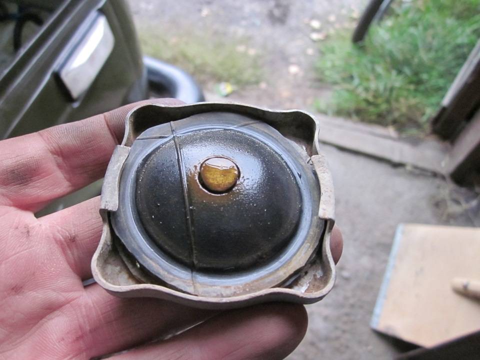 Пробку радиатора чуть дорабатываем.Шток отпиливаем болгаркой и вырезаем 2 прокладки из автокамеры, чтобы максимально уплотнить соединение.