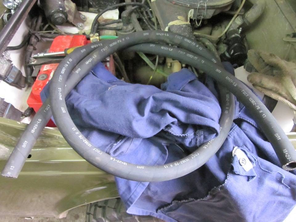Подгоняем купленный шланг от термостата к радиатору по месту…