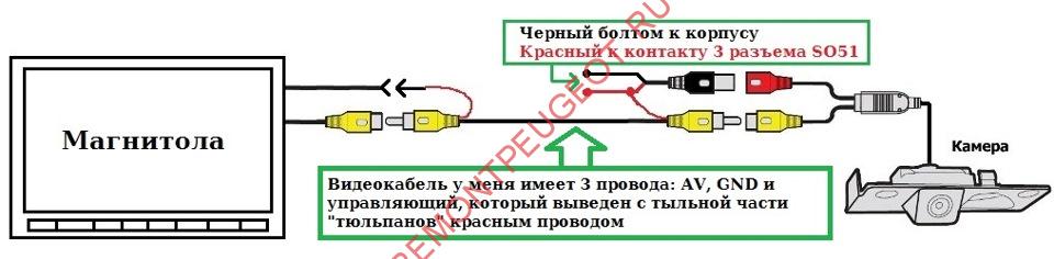 Схема подключения разъемов кабеля камеры к автомагнитоле
