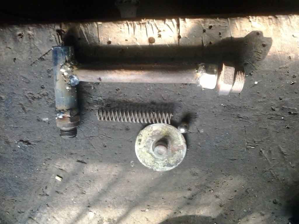 Как вы уже догадались, клапан будет ввернут вместо свечи, без каких либо переделок двигателя. Длину пружины подбирал экспериментально, также как и ширину, но шарик нажимается довольно туго. Как видно на фото выше, я к трубке приварил резьбовое соединение от гидравлики какого то автомобиля, далее идет метра 1,5 трубки далее прямо шланг на орбитальную машинку.
