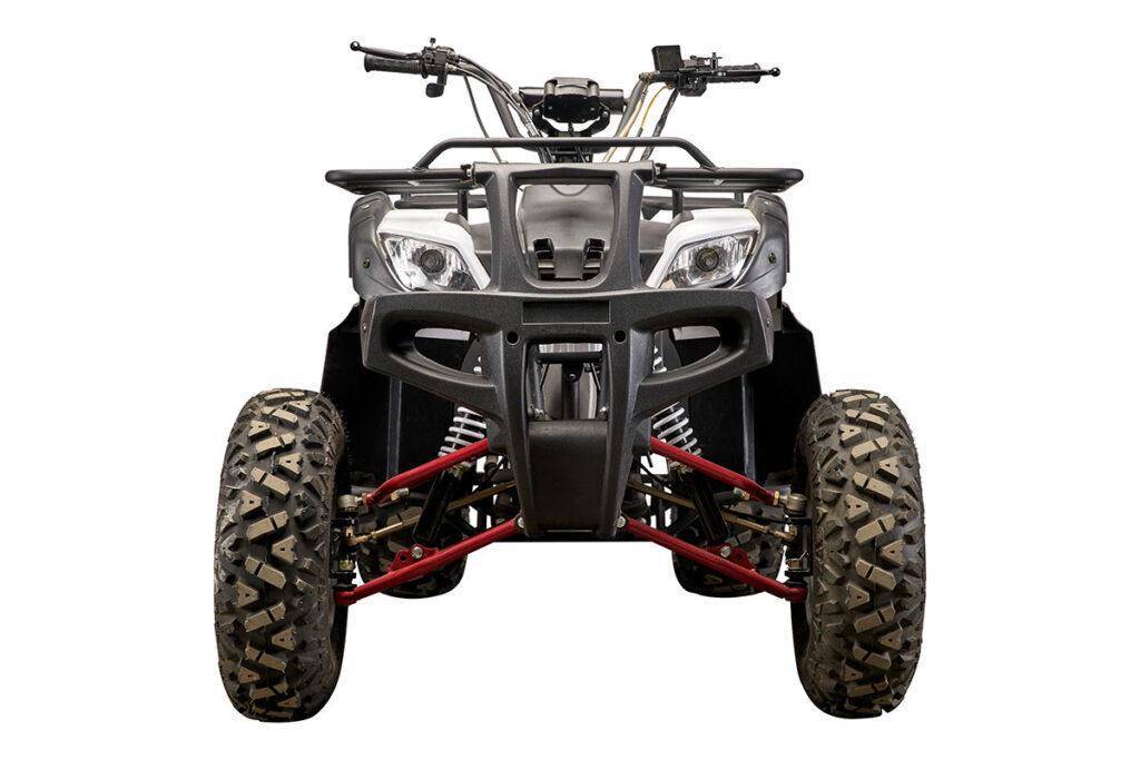 Сзади установлена маятниковая конструкция подвески, дополненная одним моноамортизатором. Спереди используется классическая независимая, оснащенная двумя А-образными рычагами, шаровыми опорами, а также здесь имеется два пневматических амортизатора. Тормозная система гидравлическая с дисковыми тормозами. За счет всего этого квадроцикл отличается высокой маневренностью, надежностью и плавностью хода. Из светового оборудования здесь присутствуют светодиодные фары головного света и четыре дополнительных, что обеспечивает отличную видимость при езде в темное время суток. Сзади установлены стоп-сигналы.