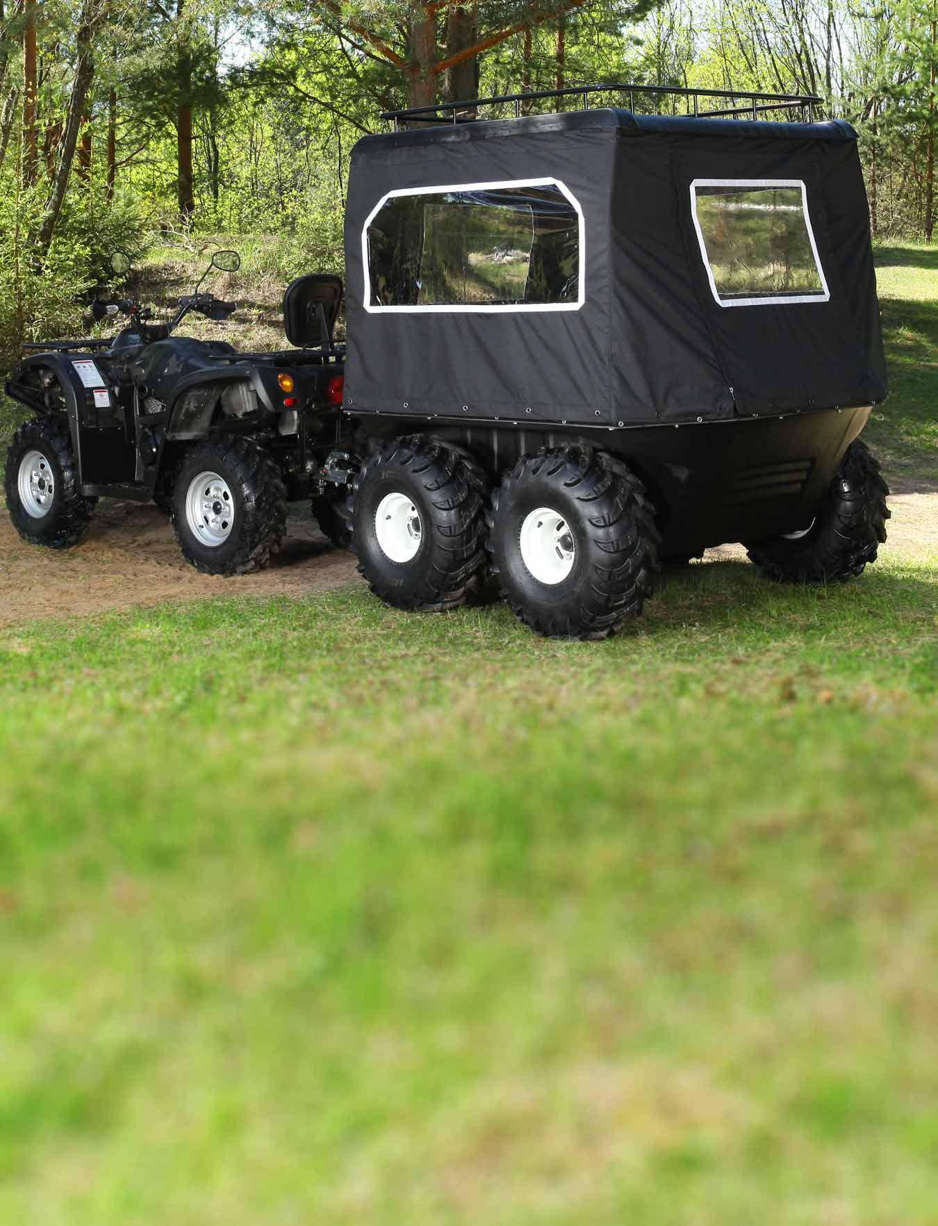 Вездеход с двигателем в 200 см3, 1 цилиндром на 4 такта, мощностью 16 л. с. Система охлаждения масленая, коробка передач – реверсный вариатор. Модель укомплектована регулируемой подвеской, дисковыми тормозами, карбюраторной системой впрыска топлива. Особенностью модели является трубчатая сварная рама, защита дна и ног водителя.