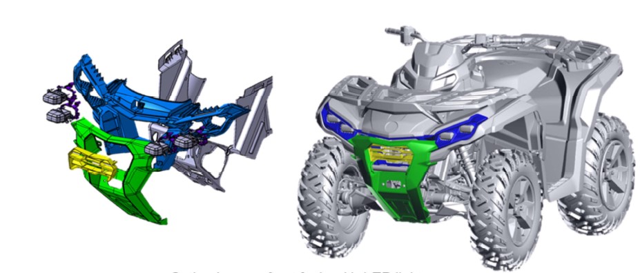 Самое заметное внешнее отличие - прямоугольные диодные модули головного света от Summit G5. В отличие от снегохода у квадроцикла левая и правая стороны симметричны. Предусмотрена даже возможность регулировки светового пучка. Выглядит действительно здорово, но что делать в случае повреждения чудо фары? На момент написания статьи эти детали недоступны для заказа!