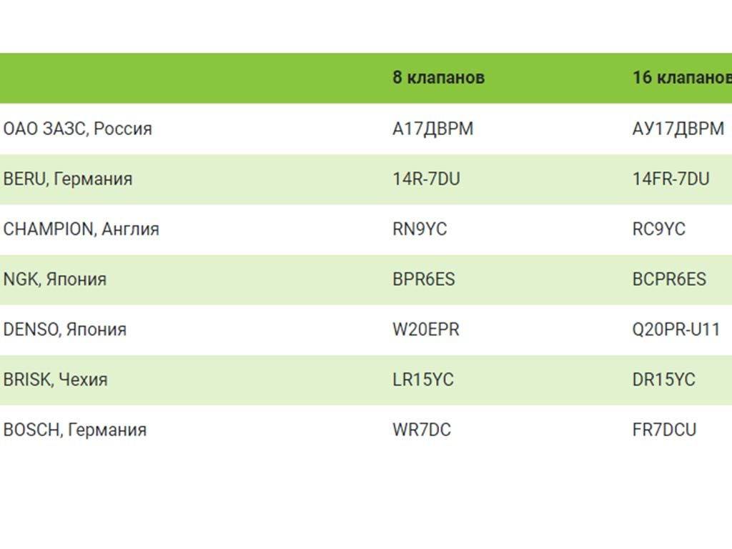 Разумеется, не каждый автовладелец захочет устанавливать СЗ российского производства на свое авто. Поэтому при необходимости можно подобрать аналоги. Для 8-клапанных двигателей это Beru 14R-7DU, Чемпион RN9YC, NGK BPR6ES, DENSO W20EPR. Для моторов на 16 клапанов — Beru 14FR-7DU, Чемпион RC9YC, NGK BCRP6ES, Denso Q20PR-U11.