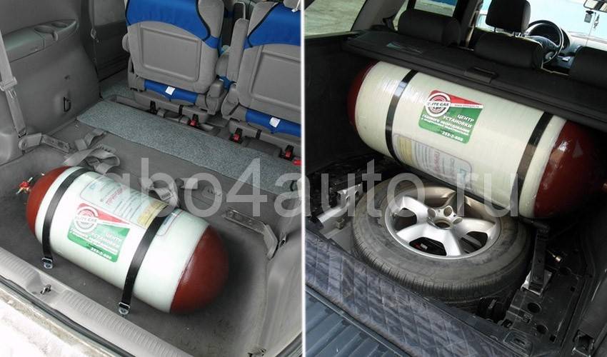 - Ну и самый выгодный вариант – это установка газобаллонного оборудования, в частности пропановой установки, которая позволить уменьшить расход кошелька владельца на горючем. Газовый баллон под днищем, запаску придётся положить в салон автомобиля
