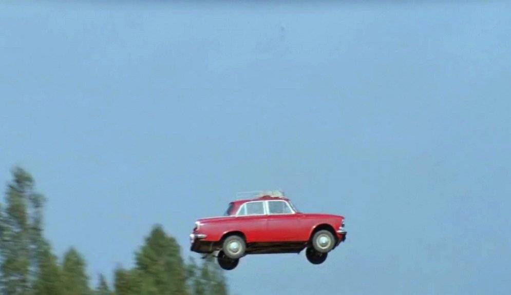 Нельзя не упомянуть и «летающий» «Москвич» Шефа. В кадре появилась его редкая экспортная модификация 408-И. Авто легко опознать по четырехфарной решетке.