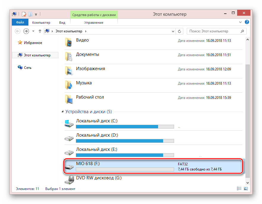 Подключите к ПК флешку от видеорегистратора. Можно использовать как стандартный носитель информации, так и любую другую microSD небольшого объема.