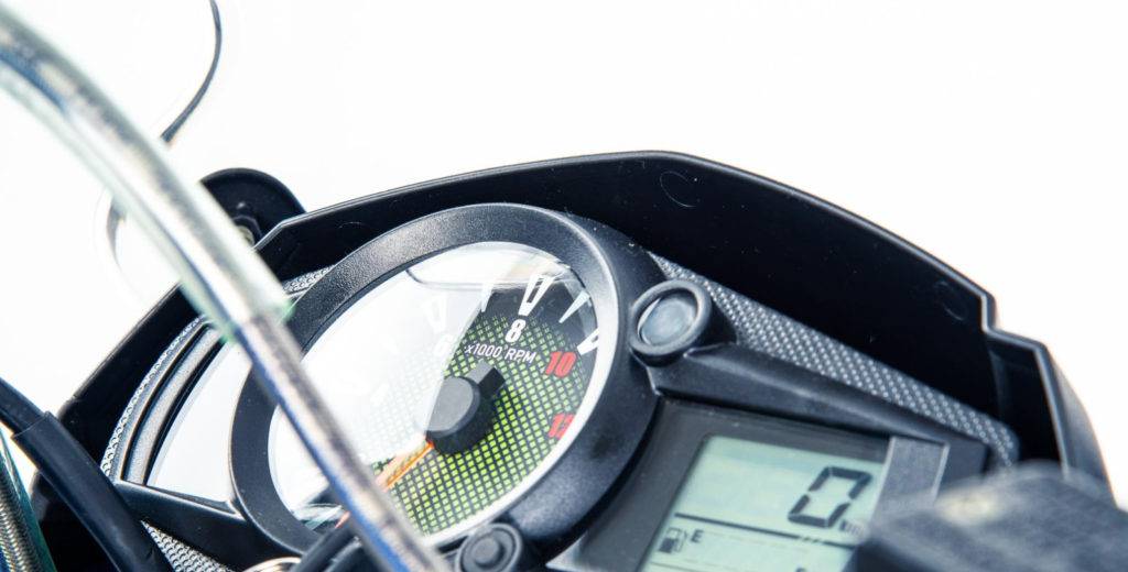 Достаточной емкости бак (16 л) оборудован топливомером, приборка включает тахометр, задний фонарь выполнен на светодиодах.