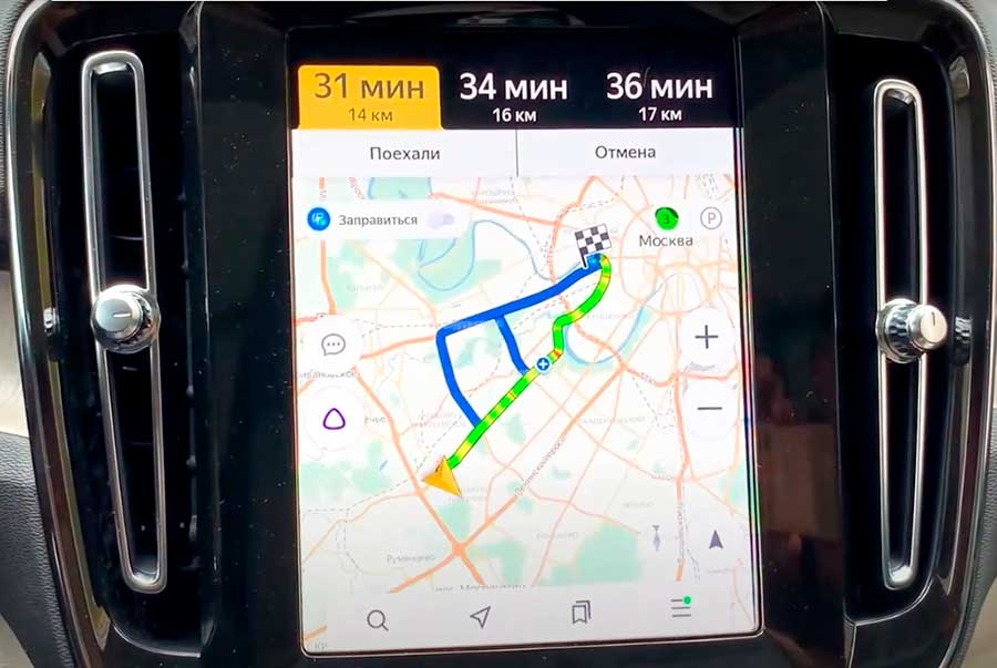 - Проложить маршрут следования к определенному адресу. В расчете маршрута учитываются возможные пробки, по какой полосе двигаться.