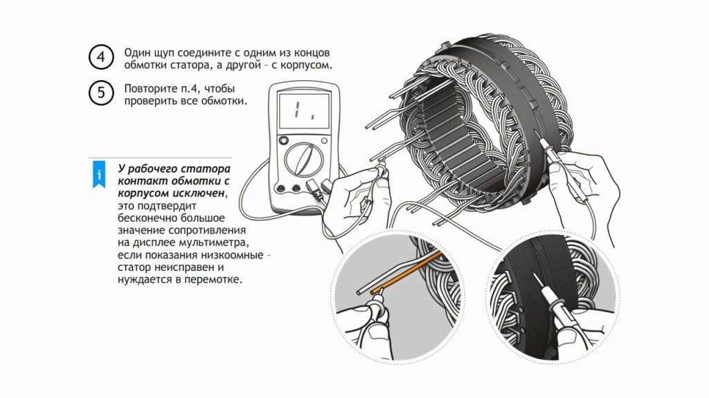 На заключительном этапе проверяем обмотки на обрыв и короткое замыкание.