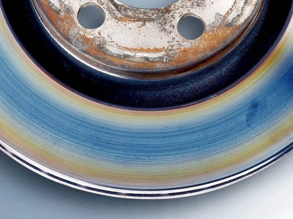 Главный признак — характерные синие или желтые полосы на металле диска, который после прекращения движения отдаёт паром. Такой перегрев укажет на температуру в пределах 450°С. А если полоса чёрная — выше 500°С.