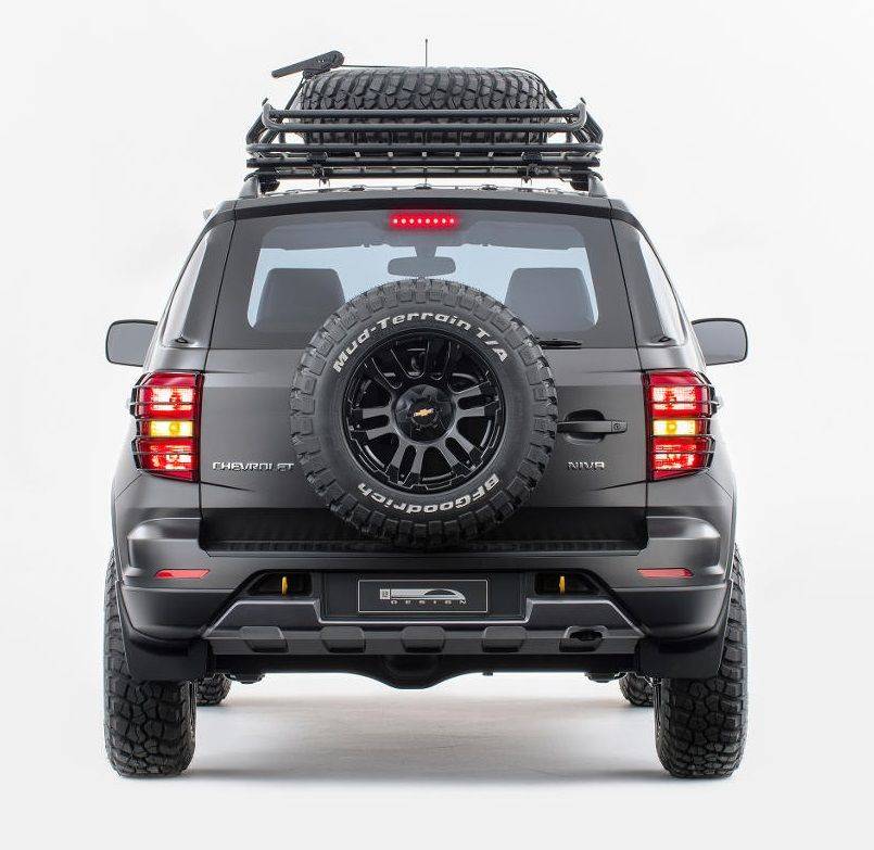 Длина нового поколения Шеви Нивы увеличилась на 30 см. и теперь равна 4316 мм. Остальные параметры существенно не изменились. Также поменяли боковые зеркала – они стали больше, у них появилась электрорегулировка и светодиодные повторители поворотов, они могут автоматически складываться. Задняя часть новой Шевроле Нивы также чем-то похожа на задок Mercedes ML-Class. Оригинально смотрятся стеклянные треугольные вставки возле крышки багажника, как и сама крышка.