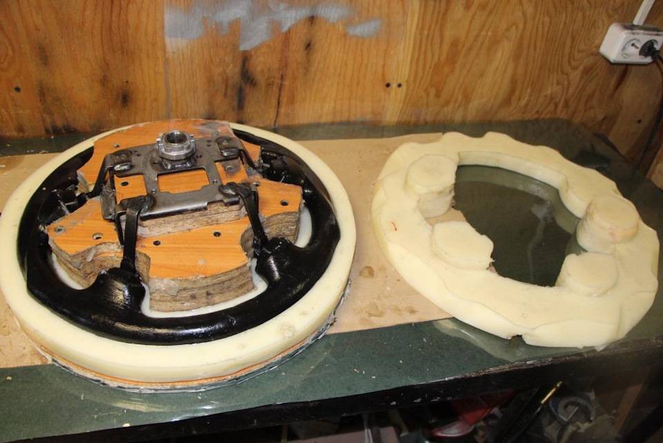 Делаем это по возможности ровно и аккуратно, так как это и есть основа нашего будущего руля. Отполировать поверхность матрицы до идеала можно с помощью шпатлевки. Здесь уже нужно идеально отполировать поверхность, учитывая все предполагаемые изгибы и заострения обода.