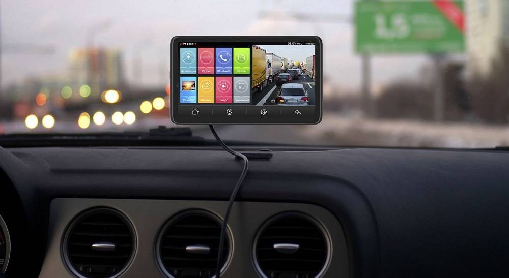 Четкая картинка выводится на 7-дюймовый монитор, двухъядерный процессор Cortex A7 Dual Core с графическим ускорителем быстро отвечает на запросы, подключение к интернету обеспечивает обновление карт и трафика в режиме реального времени. Из дополнительных опций – фронтальная камера, есть вариант вести диалог по Bluetooth или Wi-Fi с использованием видеосвязи.