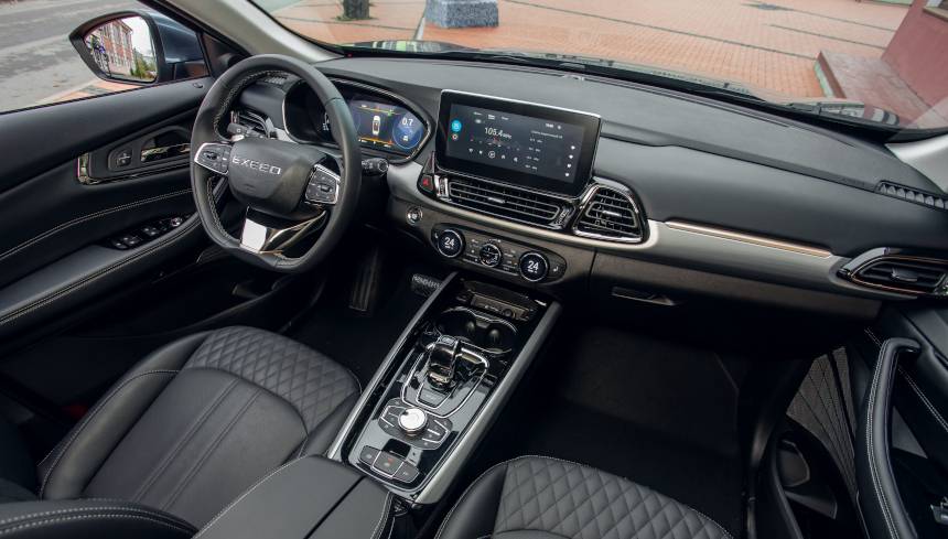 Автомобиль приятно удивляет своей компоновкой и отделкой. Они настолько хороши, что назвать его китайским сложно. Центральная консоль выделяется большим семидюймовым сенсорным экраном, при помощи которого легко управляется мультимедийная система и прочие опции автомобиля.
