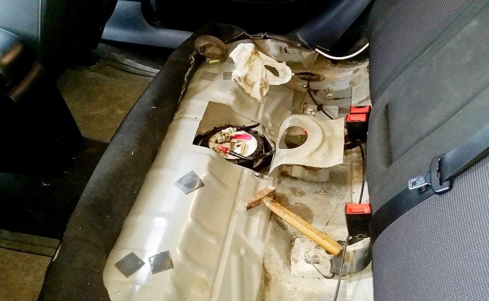 Бензонасос находится, как правило, под задним сиденьем внутри бака