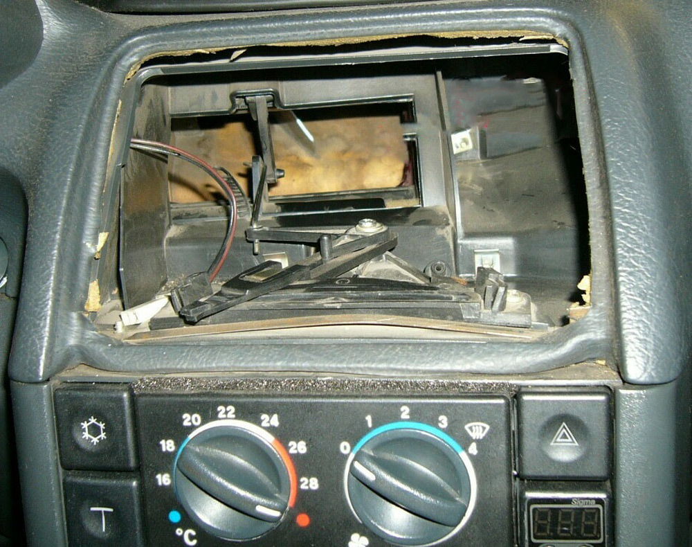 - возьмите лампочку на 12 В, оснащенную проводами, и разберите центральную часто консоли печки в салоне;