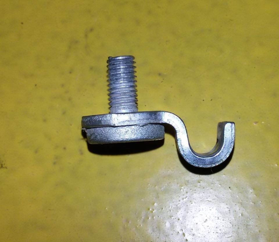 отворачиваем стопроцентно верхний болт скобы, ослабляем нижний болт и запорный болт. Подкладываем шайбу под верхний болт