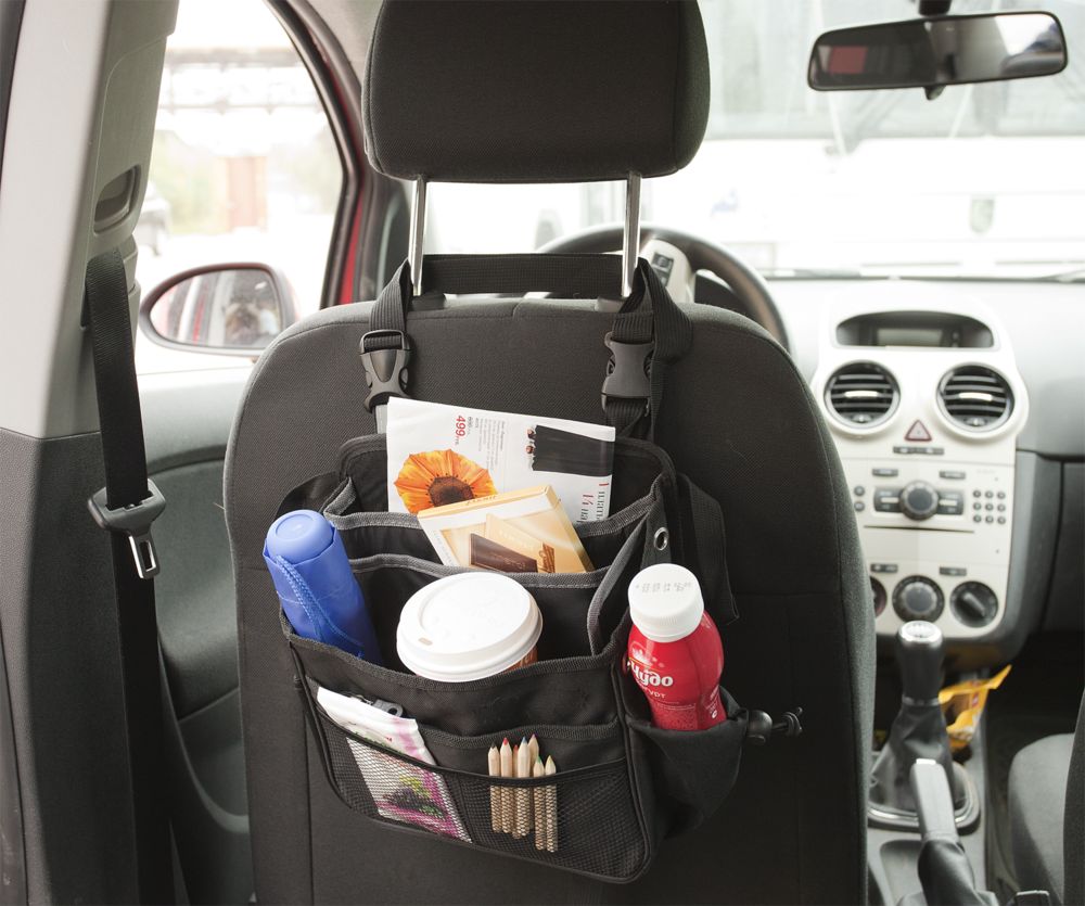 - органайзер на сиденье — нужная вещь в любой машине и необходимая для семейного авто, особенно если у владельца маленькие дети;