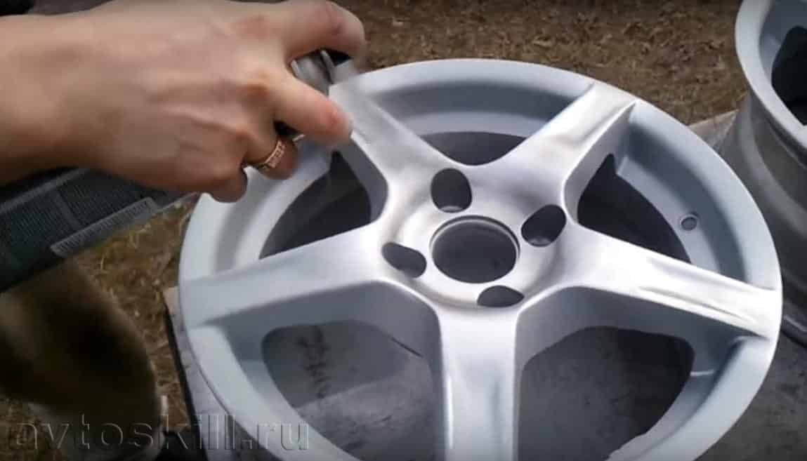 При окрашивании дисков без снятия покрышек процесс подготовки имеет свои особенности: