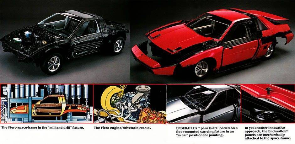 Стальной каркас Pontiac Fiero воплотил в себе самые передовые мысли конструкторов тех лет. С весом всего в 270 кг, он состоял из 300 составляющих деталей, при этом обладал неимоверной прочностью, а это повышало безопасность автомобиля в целом.