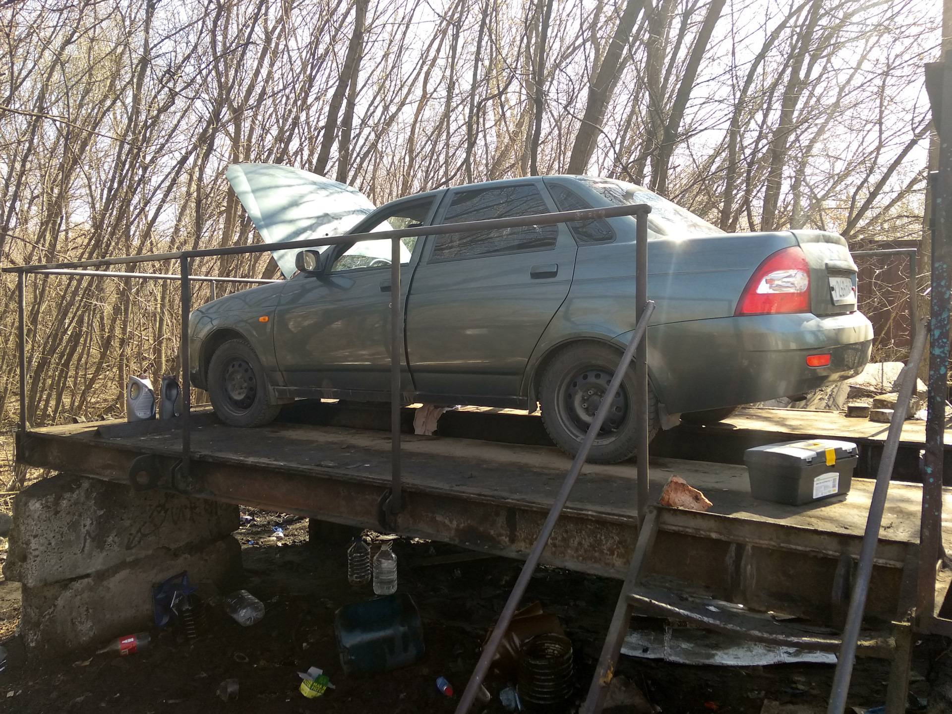 2. Устанавливаем машину на смотровую яму, чтобы добраться до пробки было легче. Можно, конечно, обойтись и без ямы, но доступ к сливной пробке будет не очень удобным.