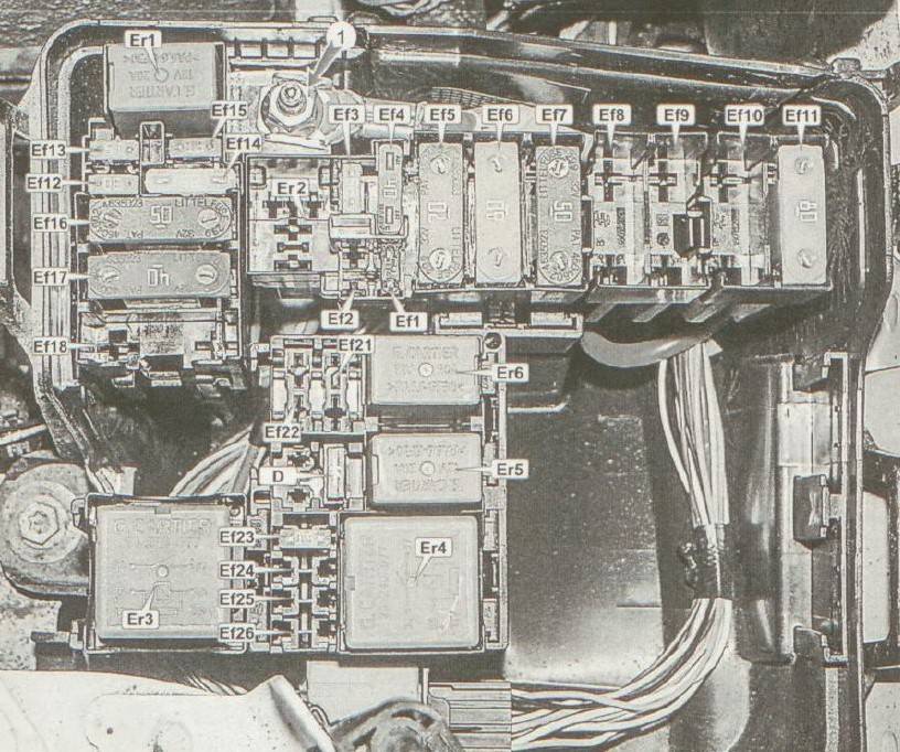 | F3 (25) | Цепи: топливного насоса и катушек зажигания; главного реле К5 системы управления двигателем |