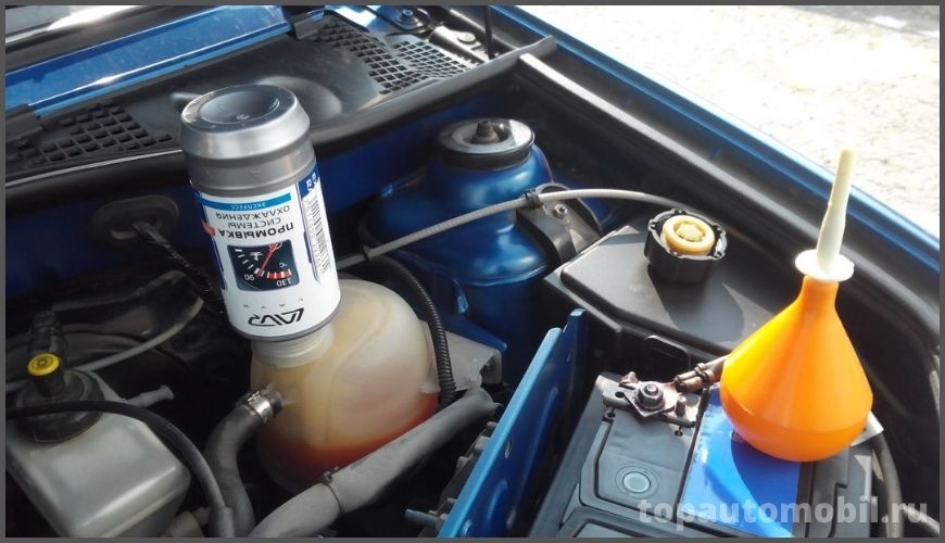 - Некоторые добавляют прямо в старый антифриз-тосол, процесс повторяем (30 минут на холостых). После обязательно промыть водой и залить чистую жидкость