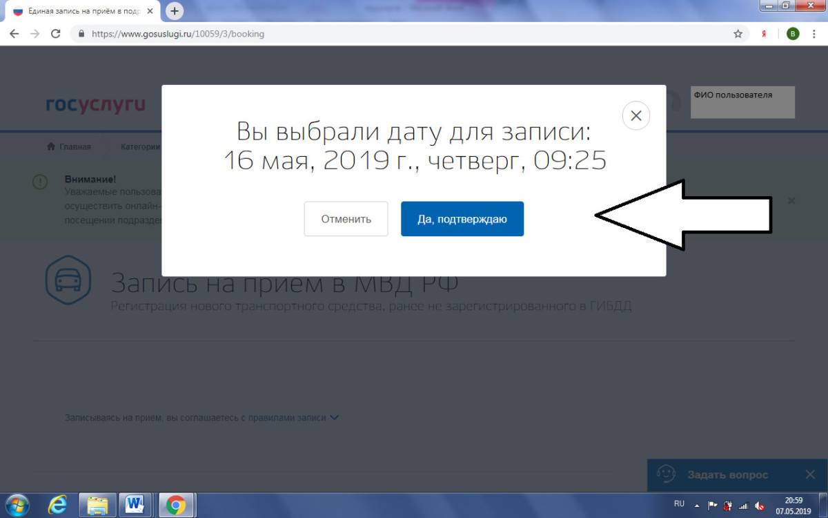 Система запросит подтверждение записи. Для этого достаточно нажать на иконку «Да, подтверждаю».
