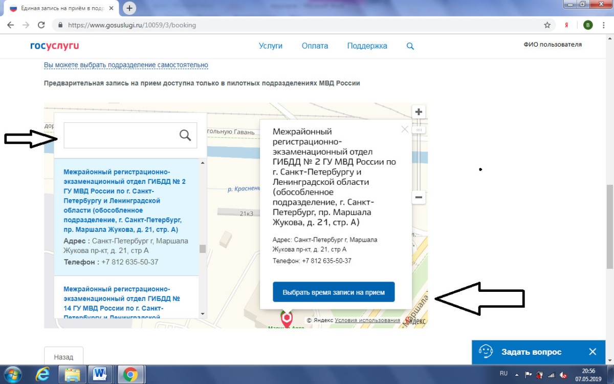 Нажав на иконку, необходимо внести персональные данные, если паспорт пользователя занесен в базу «Госуслуги», сведения будут внесены по умолчанию. Затем нужно выбрать отделение ГИБДД, в котором гражданин представит оригиналы документов.