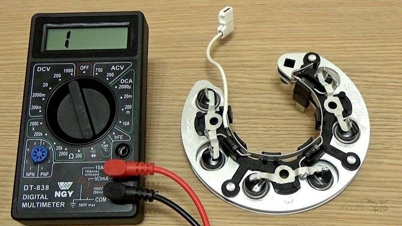 - также не допускается диагностика выпрямителя мегаомметром — этот этап проверки допускается исключительно тестером с напряжением не более 12 вольт.
