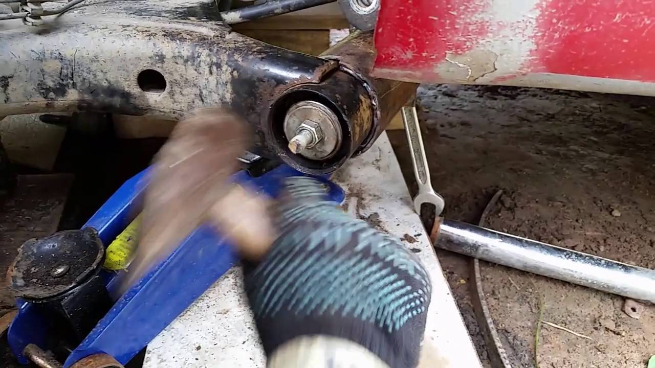 Чтобы упростить работу можно установить рычаги на твердую ровную поверхность и выбить старые сайленты ударами молотка. В сервисных центрах для этого используются специальные выпрессовщики. Они предпочтительнее, поскольку снижается риск повреждения рычага.