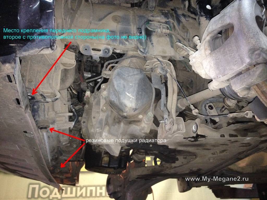 Для этой цели потребуется ключ на Снимаем болты крепления передней части подрамника. Их замена сайлентблоков рено меган 2 два — слева и справа
